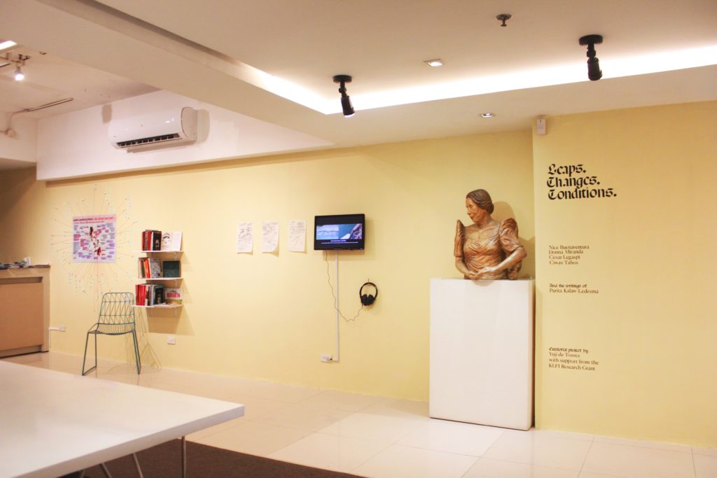 There were many highlights during the research process and implementing the project at the PKL Center. As noted above, the proposal itself was looking for form and ground. The first highlight for me was reading through the book of manuscripts by Purita. I felt a sense of connection with Purita as she attempted to find forms of modernity in/through Philippine Art. From writing about meeting with Sukarno to roughly articulating her perspective on youth activism, it felt like a “struggle” a la her book. The second highlight was working with the space. It is not a white cube. There are certain spatial limitations such as the research tables, the library, Purita’s bust, and the vitrines. These limitations made me more conscious about working with the space and the KLFI team, opening up the research with more collaborators.
